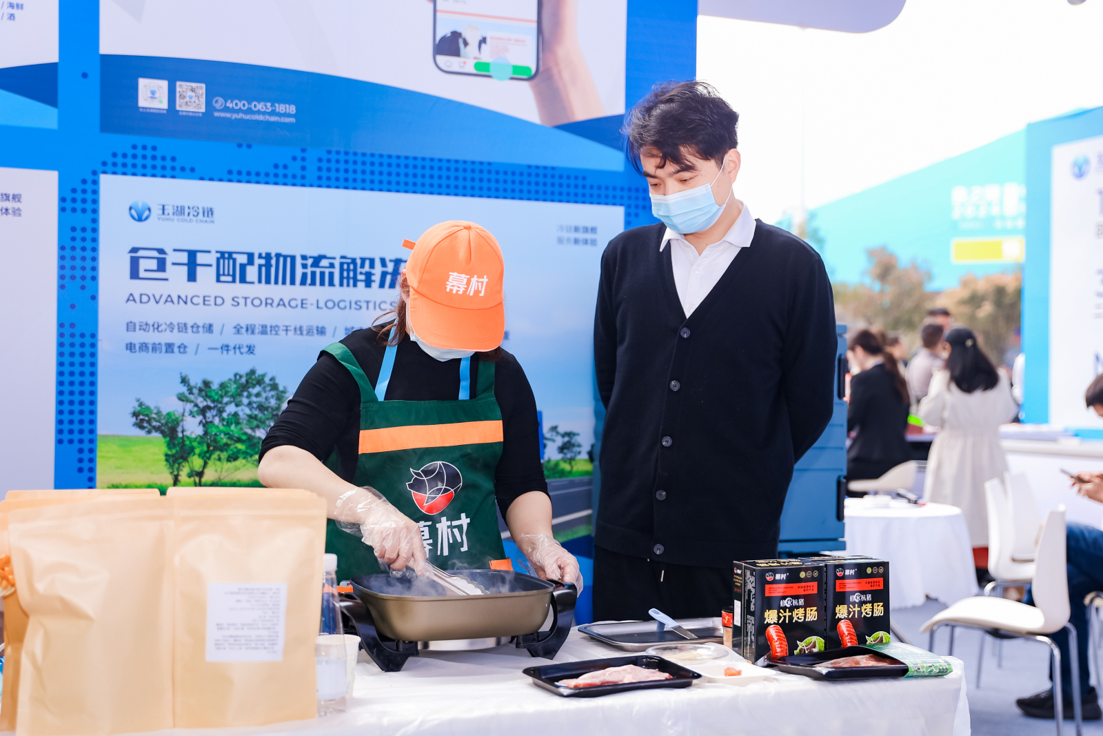 江西美园食品有限公司、江西赣菜食品集团有限公司、赣州聚万食品有限公司、江西九江瑞昌市溢香农产品有限公司、江西幕村农牧科技有限公司、江西果然食品有限公司、江西赣州兴万家现代农业发展有限公司、江西大由大食品科技有限公司、江西芳德食品科技有限公司、上饶市利厨食品有限公司带来了优质食材,如澳洲和牛、安格斯牛肉,以及麻辣烤鱼、即食糯米饭等预制菜。各联展丝瓜APP网站入口采用灯箱、冷柜、烹饪样品、菜模、试吃品鉴等形式全方位展示各自产品矩阵,展位上人头攒动。