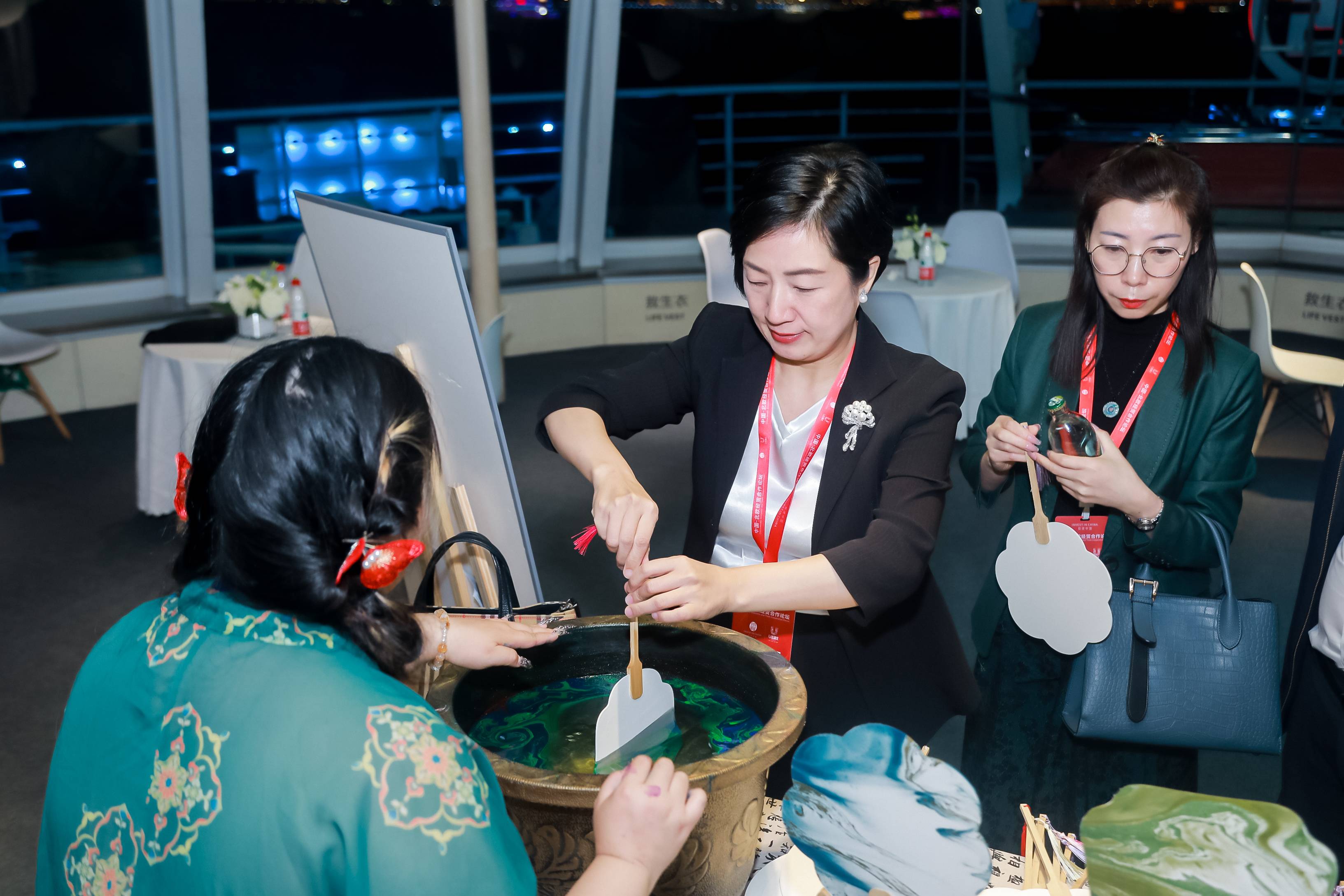 嘉宾体验非遗漆染工艺 制作漆扇画