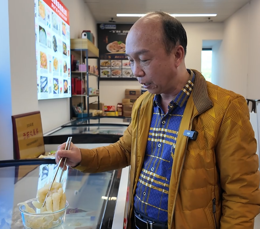 得益于“产区直采+工艺标准化”模式,玉宏和食品版图不断扩张。江福明透露,公司除精选北部湾特级白蜇,还在泰国、印尼布局优质原料基地。经营范围也从海蜇及预制菜,拓展到鲍鱼、海参等海产品,还有牛、羊、猪等畜禽产品。